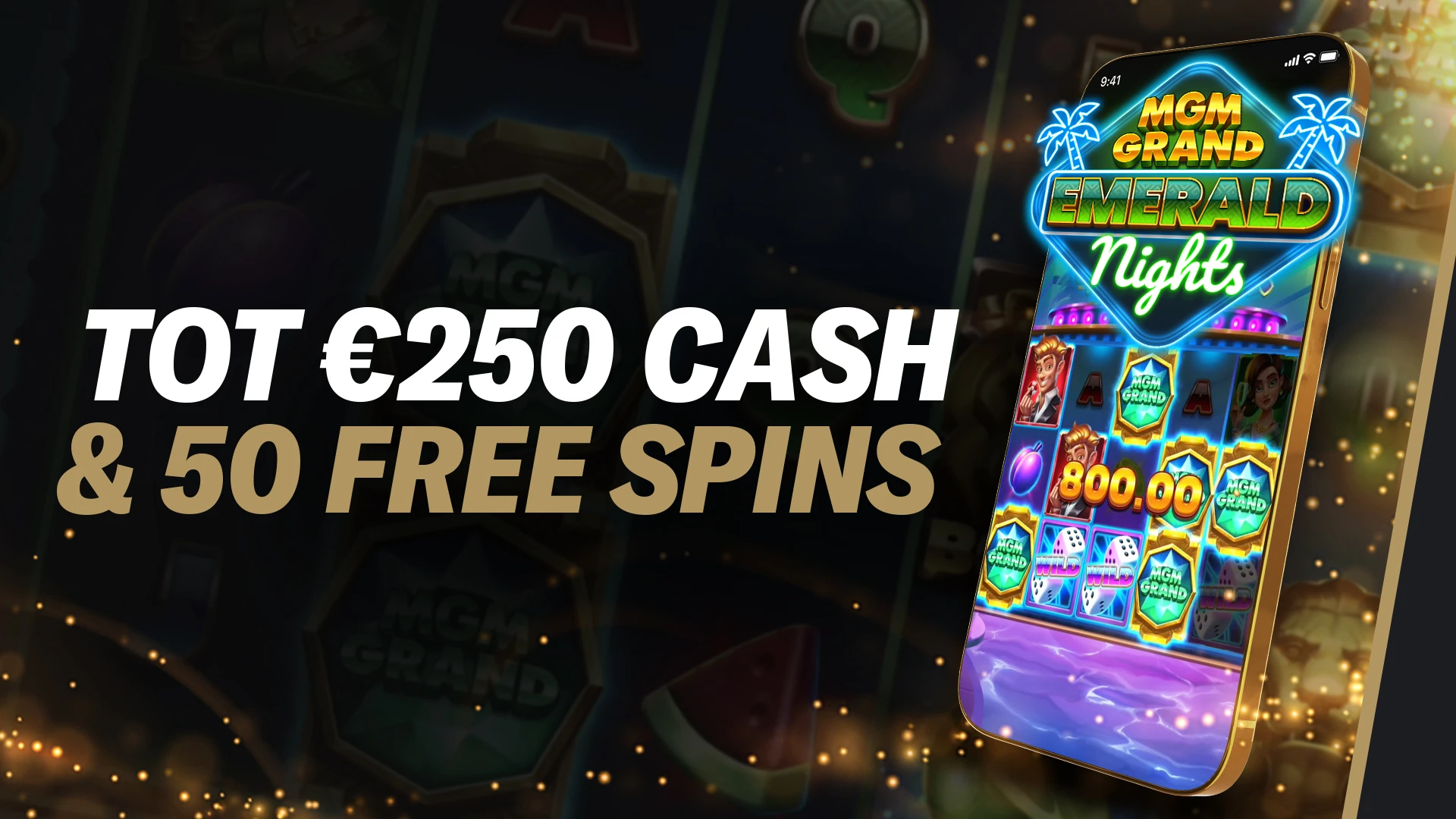 - Spel: De free spins zijn bij de lancering geldig op de BetMGM-gokkast “MGM Grand Emerald Nights”.